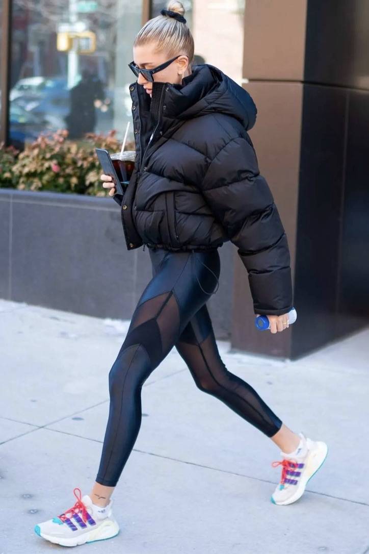 Hailey Bieber rocked lustrous leggings that were a slick, gym-ready look. In a black, wet-look finish, these leggings may be made for performance, but that doesn’t mean they’re lacking in style. The versatility of these luxe leggings means that you can leave your workout class without having to worry about getting changed - just throw on a cropped puffer jacket and some sunglasses for a Hailey Bieber-approved work. A similar alternative as SPORT.LES is the MICHI Enigma Legging Liquid Black.